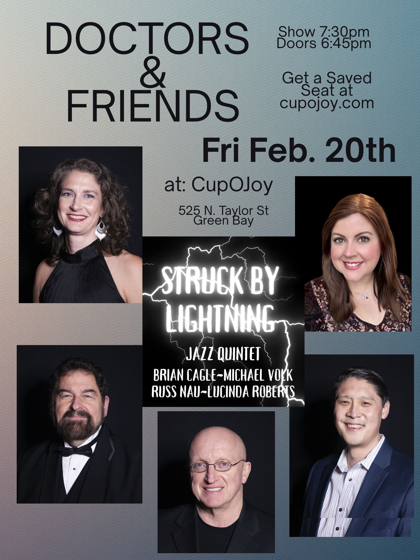 Struck by Lightning-jazz quintet with: Michael Volk MD, Brian Cagle Ph. D, Russ Nau and Lucinda Roberts