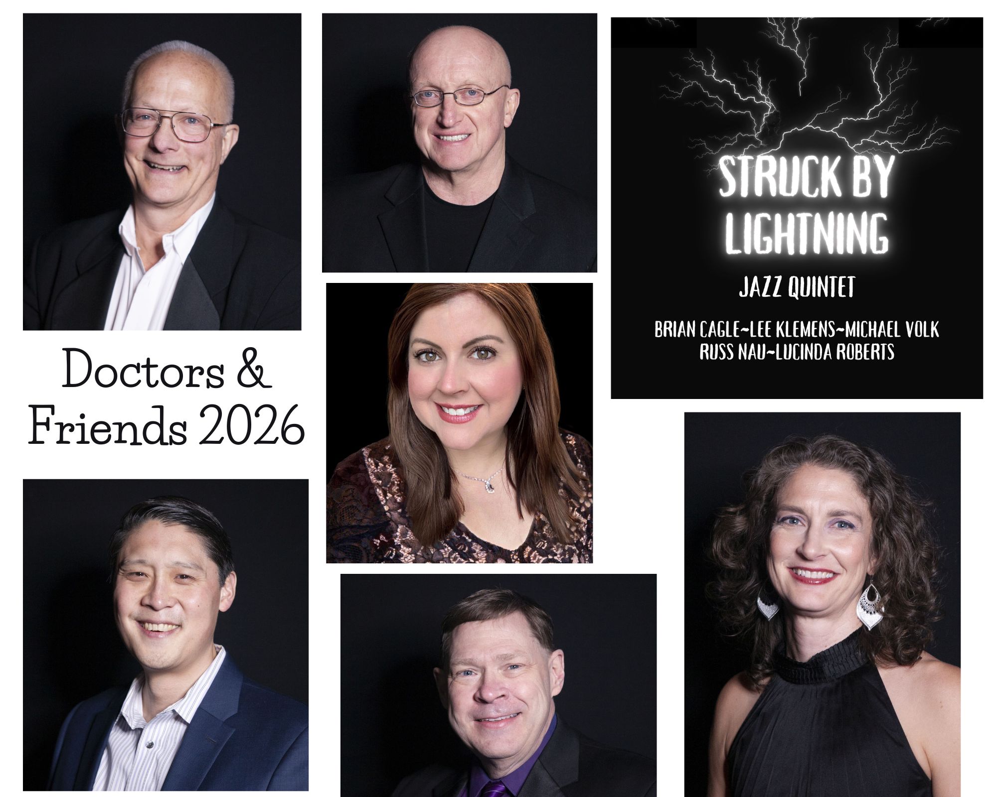 Struck by Lightning-jazz quintet with: Michael Volk MD, Lee Klemens MD , Brian Cagle Ph. D, Russ Nau and Lucinda Roberts 7:30pm Show, Doors 6:45