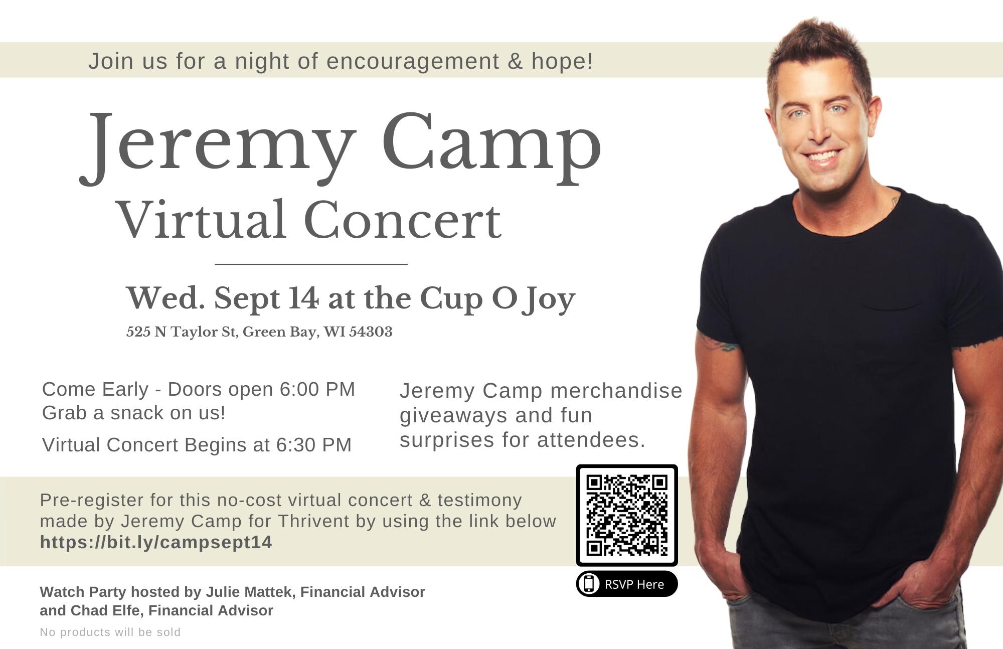 Jeremy Camp Virtual Concert by Thrivent Wednesday, 09/14/2022