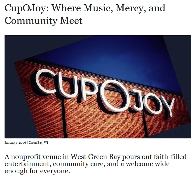 CupOJoy hosts 'Music That Inspires' on the west side of Green Bay in an Alcohol Free/Family Friendly environment. Artists come from all over the country to the Cup stage. If you've got a favorite Christian Artist, they may be coming to the "Cup". Every style of music is represented. Artist's love the "Cup" because of the intimate listening setting, and gracious folks. We serve various drinks and snacks… so you can munch while you listen. Check out the Upcoming SCHEDULE.